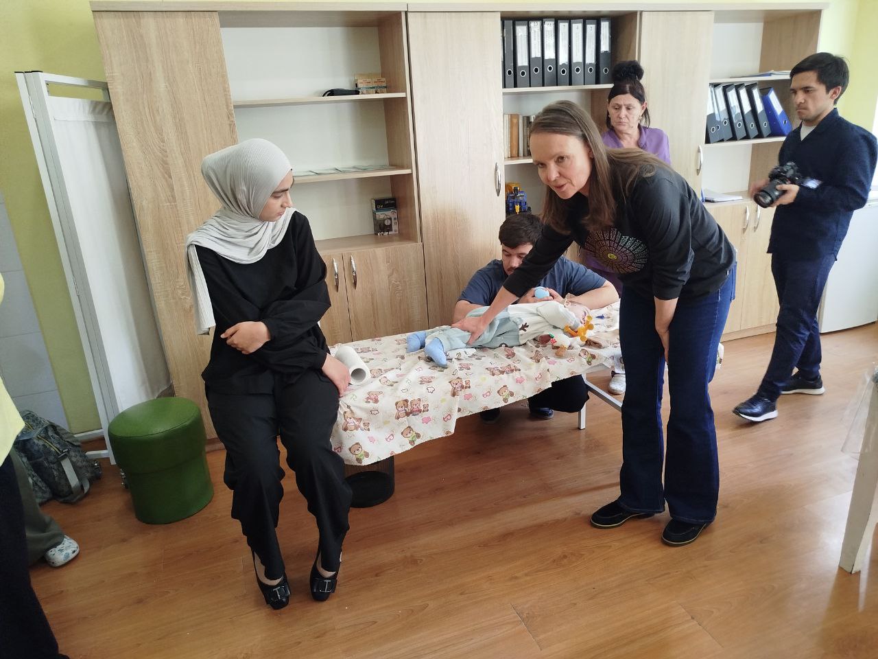 Республика болалар ижтимоий мослашуви марказида болалар паллиатив ёрдами эксперти ва “Савва паллиатив педиатрия академияси” Автоном нотижорат ташкилоти ректори, тиббиёт фанлари номзоди Наталья Николаевна Савва (Польша) СМА ва МДД ташҳисли болаларни кўрикдан ўтказиб, тегишли тавсияларини бермоқда.