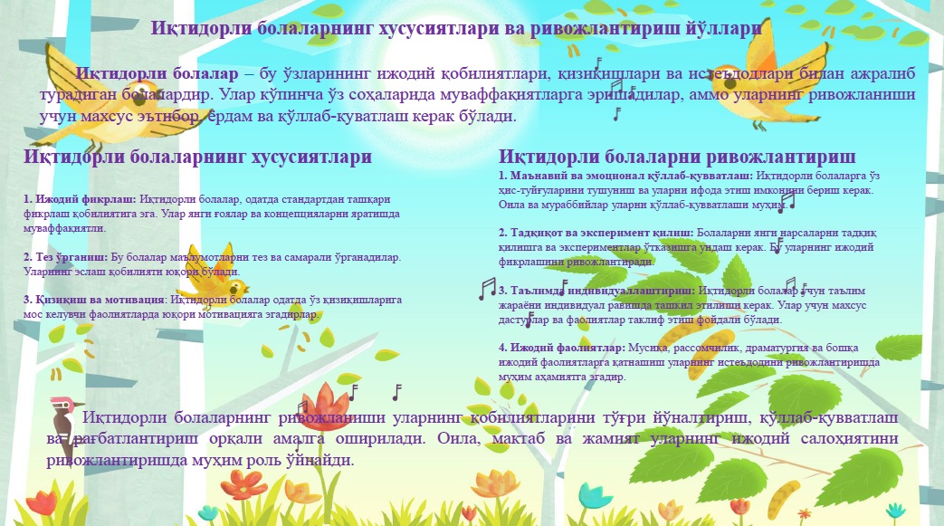 Иқтидорли болаларнинг хусусиятлари ва ривожлантириш йўллари
